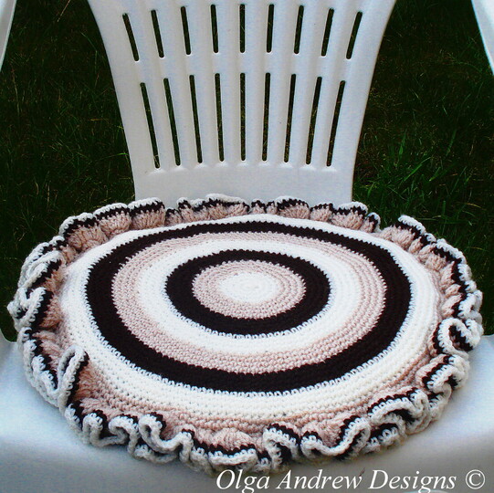 Chair seat cushion cover “Coffee and cream”. Easy crochet tutorial pattern instant download -- Olga Andrew Designs Pattern 044.