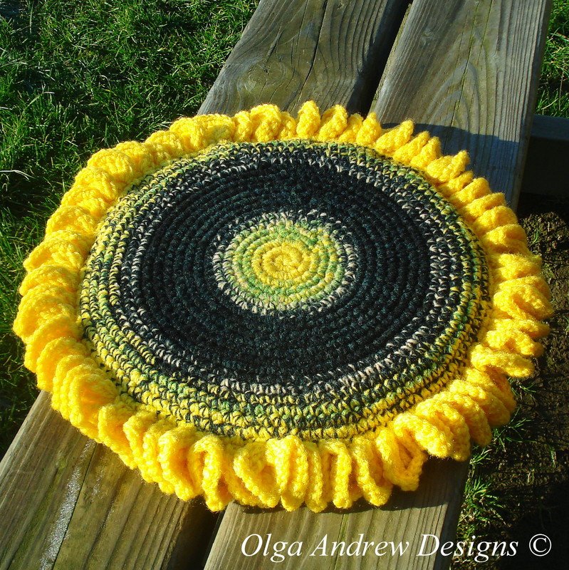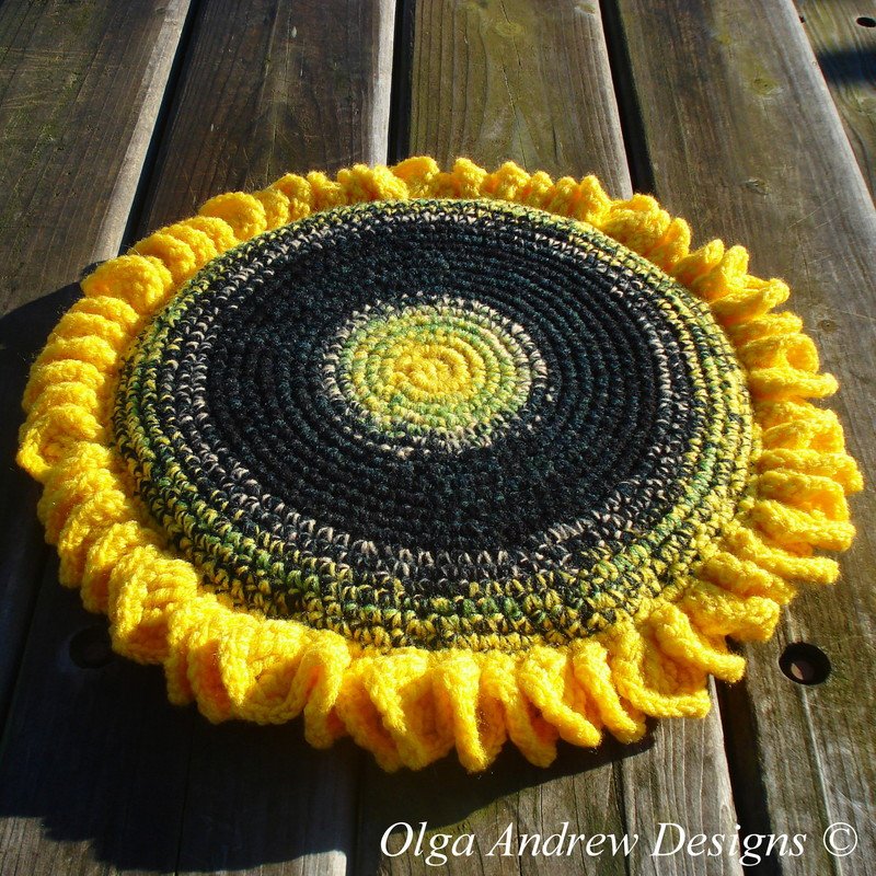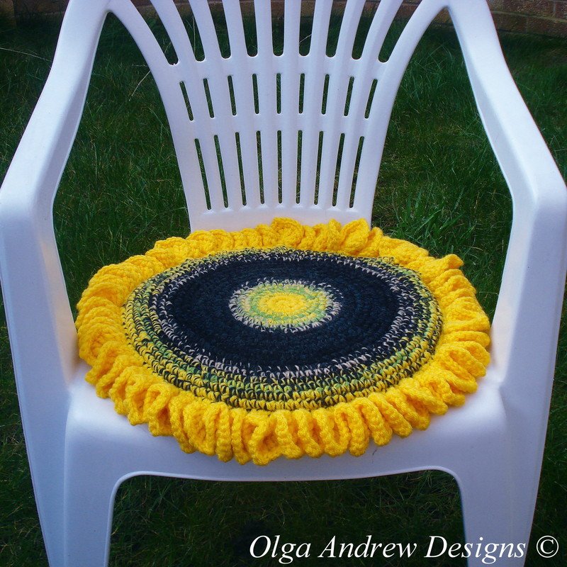 Sunflower chair seat cushion cover. Easy crochet tutorial pattern instant download -- Olga Andrew Designs Pattern 043.