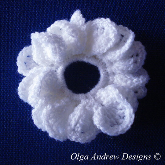 Wedding scrunchie or bun holder “Camomile” (“Daisy”). Easy crochet tutorial pattern instant download -- Olga Andrew Designs Pattern 016