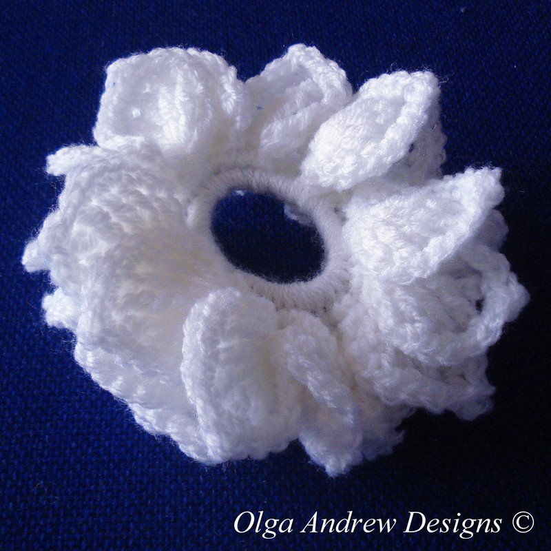 Wedding scrunchie or bun holder “Dahlia”. Easy crochet tutorial pattern instant download -- Olga Andrew Designs Pattern 022