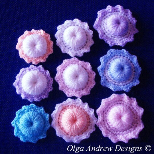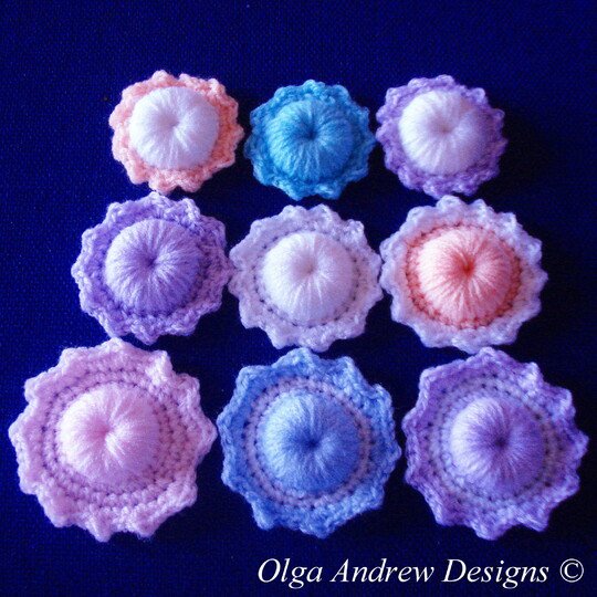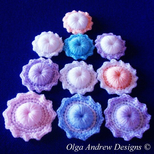 Convex flowers. Easy crochet tutorial pattern instant download -- Olga Andrew Designs Pattern 047.