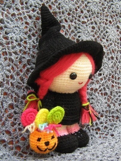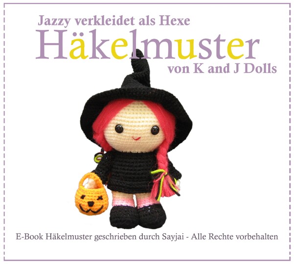 The Jazzy the Good Witch crochet pattern is written in English (using US crochet terms). A German translation is included. The pattern contains detailed instructions and 10 photos to help you make this cute little witch and her Halloween treat bag.