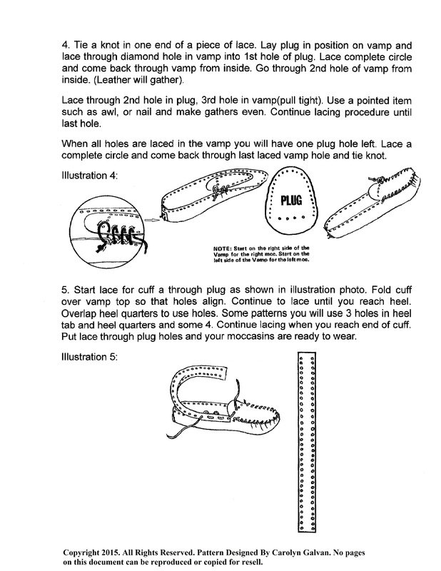 Here in this download pattern I have copyrighted a simplified pattern for driving, walking and everyday use. Step by Step guide with photos. You can re-use your pattern over and over again for personal use. Once you cut out paper pattern to cardboard for tracing unto leather you will have 3 simplified pieces to piece together. Or make moccasins for re-sell and design your own art work on moccasins and be creative.