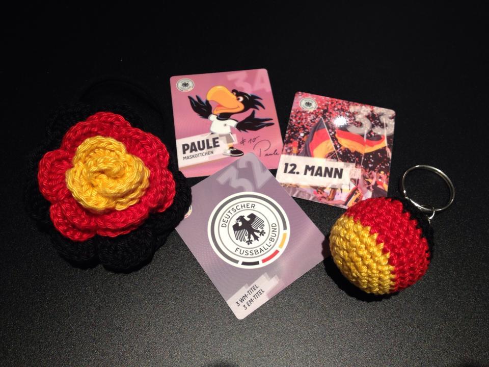 Noch ein kleines Accessoires für die kommende Fussballzeit und das Teilchen kann man sogar an den Mann verschenken als Schlüsselanhänger oder als Deko für seinen Autospiegel oder..... Wir Frauen können ihn uns auch mal an die Tasche baumeln oder wer ganz mutig ist ihn sogar als Ohrring umfunktionieren. Also da kann man sich auch so richtig austoben.