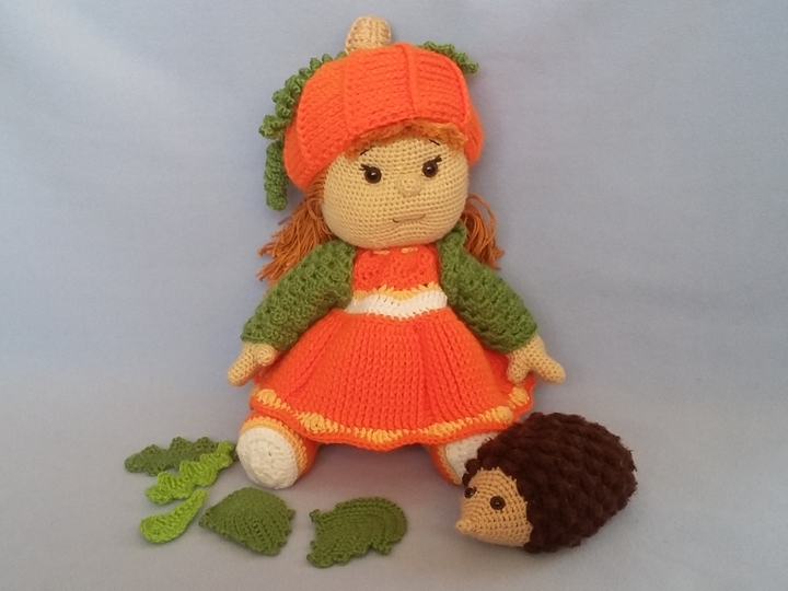 The PDF contains the instructions for the doll, the pumpkin hat, the shoes, the dress, the panties and the hedgehog & sheets.