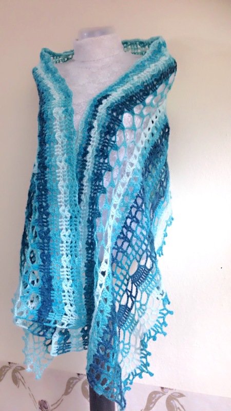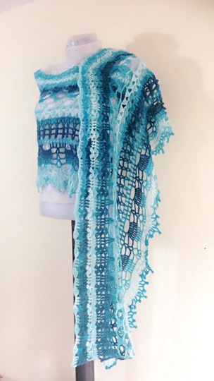 Do you want to explore lacy shawl by making it with your own selected yarn? You can use any yarn you want, fingering, sport, worsted weight can be done with this shawl/wrap.