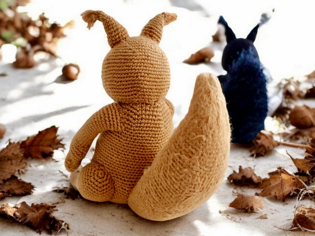 Discover the hand-crocheted squirrel that instantly steals hearts! With its detailed ears, bushy tail, and adorable paws, this little masterpiece is not just eye-catching but also a cuddly companion. Whether as a decorative highlight in your home, a playmate for children, or a thoughtful gift, this squirrel brings joy to any setting. Get this charming accessory and add a touch of nature and coziness to your home!