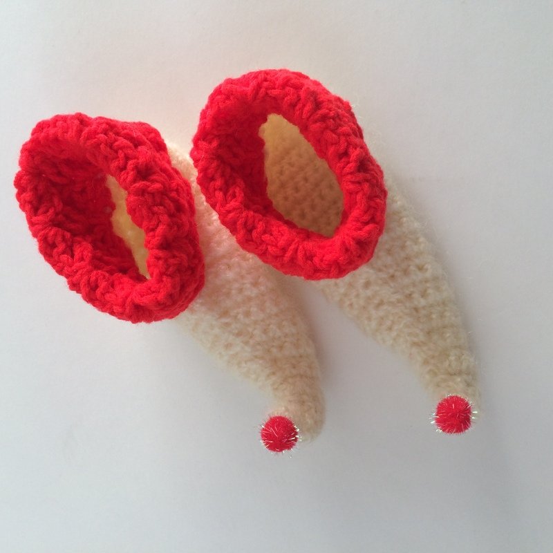These Christmas crochet elf baby booties are so adorable. I used a bright red colour yarn to make them look very Christmas.