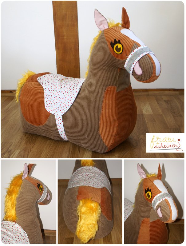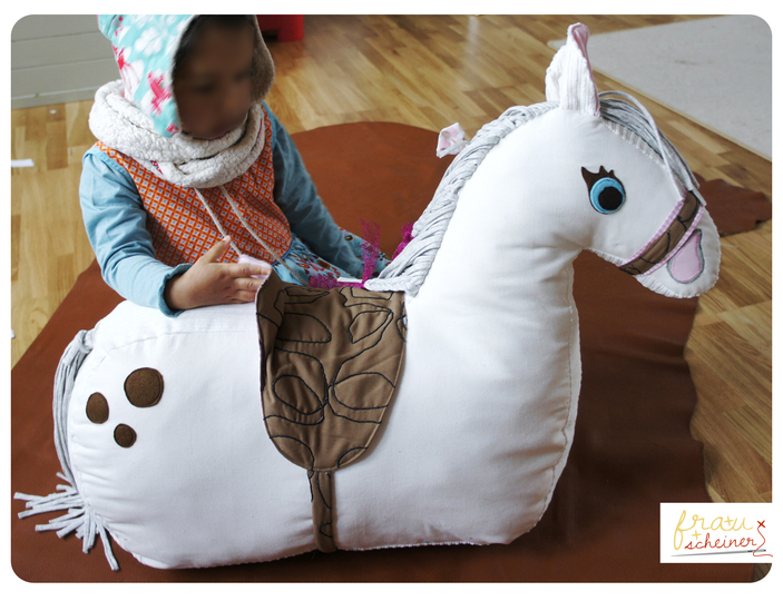 What was your first riding animal? I remember an old rocking horse made of cloth which I loved more than anything else. I wanted to make my daughter just as happy and sewed a riding animal for her. After making her a riding peacock, I wanted to bring a little horse to life too. I hope you have at least as much fun sewing as I did!