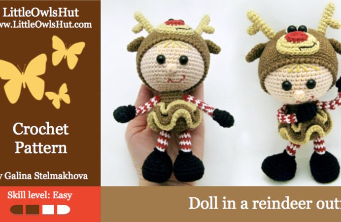 Approx. 14 cm (5.5 inches) tall (without antlers) using the materials stated in the pattern.