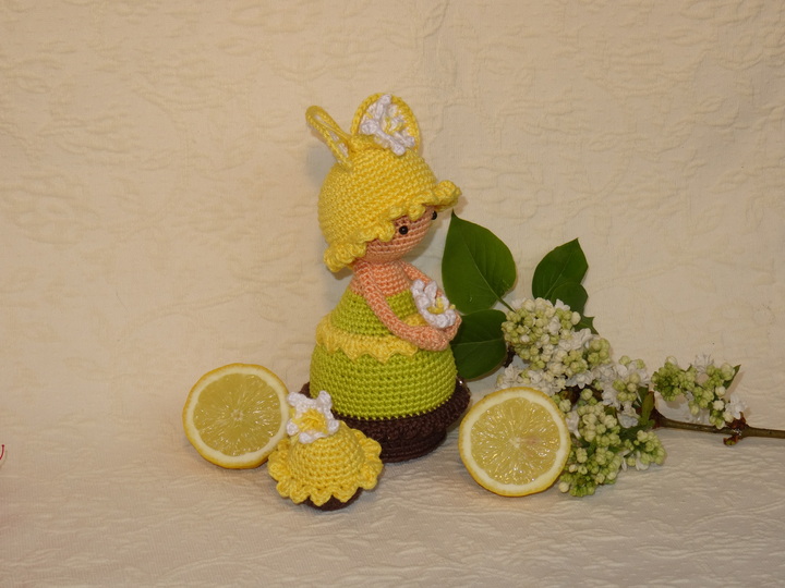 Mit dieser Häkelanleitung erhälst Du die Anleitung für das Zitronenmädchen und den kleinen Muffin.