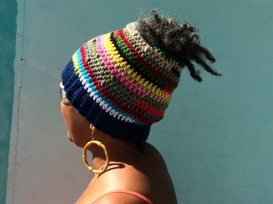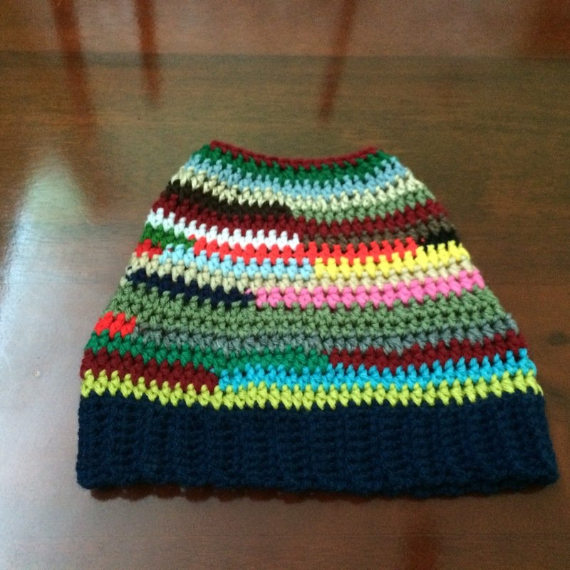 Leftover Acrylic or Cotton #4 worsted weight yarn (for correct sizing ensure that all yarn used is worsted weight). Tie all ends of leftover yarn together and roll into a ball before starting to crochet. Approximately 2x6 inch balls would be enough to make this hat.