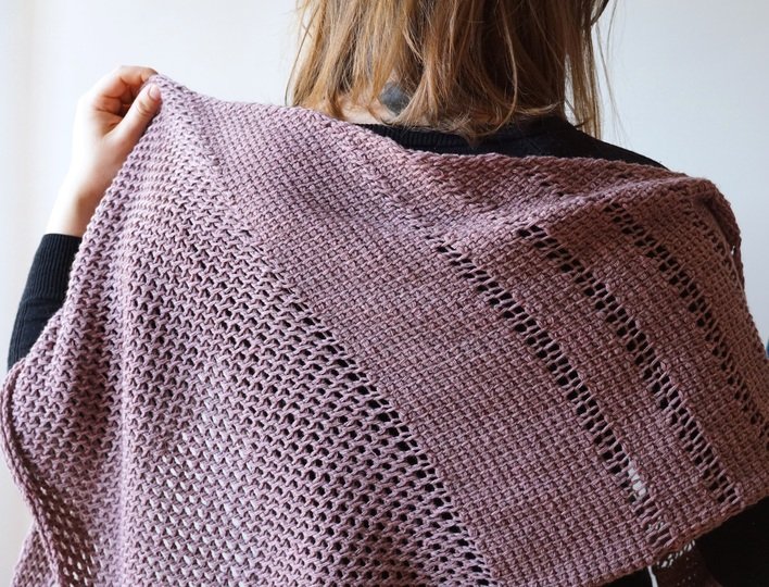 As an advanced crocheter you will love the easygoing but varied tunisian crochet pattern. Enjoy the uncomplicated stitches forming a beautiful, slightly asymmetric triangle that makes a useful and beautiful accessoire for the any occasion.