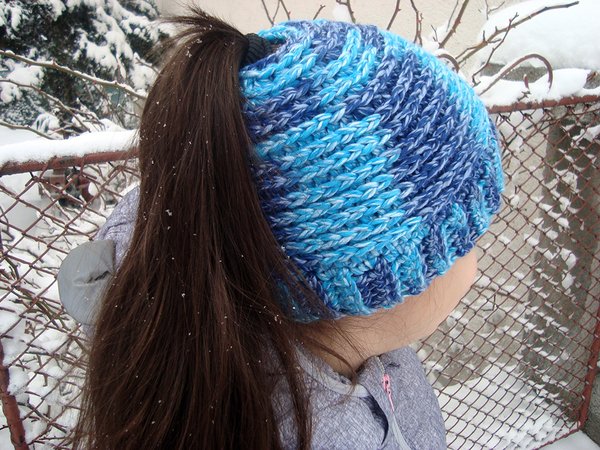 CROCHET PATTERN Warm messy bun hat for runners. Ponytail beanie for girls and women. Running toque pattern. Crochet cap with hair hole