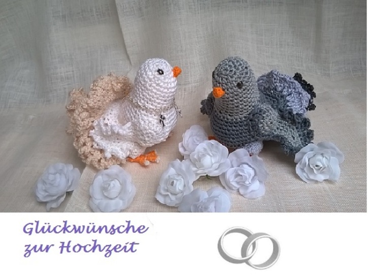 Die Anleitung ist auch für Anfänger zu häkeln. Es sieht schwerer aus, als es ist. Jede Runde ist beschrieben und mit Detailbildern versehen. Schwieriger ist wahrscheinlich das Zusammenfügen und Zusammennähen der einzelnen Teile. Richtig fest vernäht spielen nun meine Enkelkinder mit den beiden neu gehäkelten Tauben.