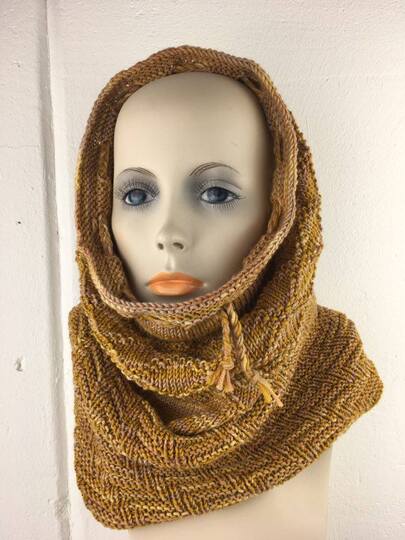 Da ich kein Mützenfan bin, brauchte ich trotzdem was für meine Ohren in dieser kalten Jahreszeit. Somit habe ich mir den Scoodie einfallen lassen. Er kann als Cowl und als Kapuze getragen werden und ist mit der Wolle total kuschelig.