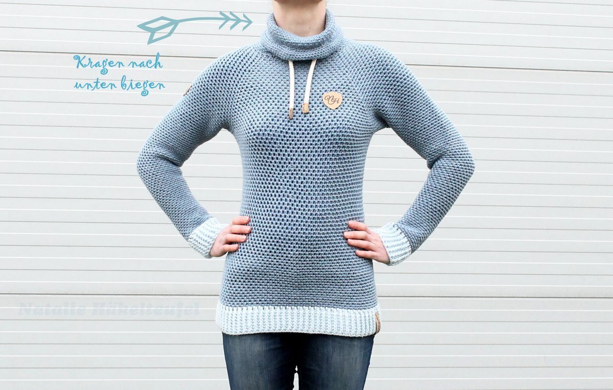 This PDF crochet tutorial consists of illustrated pattern for crocheting hoodie for size S to XXL with a nice knitted look. The jumper is quite easy to crochet, so the pattern is also suitable for beginners with previous knowledge, but not suitable as a first crochet project.