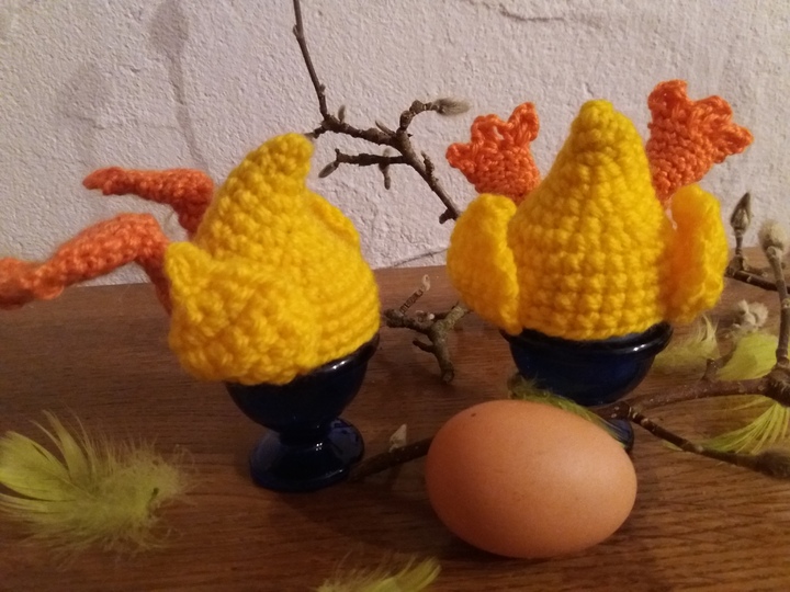 **Köpfchen in das Töpfchen, Schwänzchen in die Höh! Häkelanleitung: Eierwärmer und Hut für ein Töpfchen
