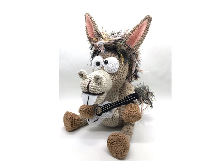 Pablo der Rocker-Esel, er liebt seine Gitarre und Musik