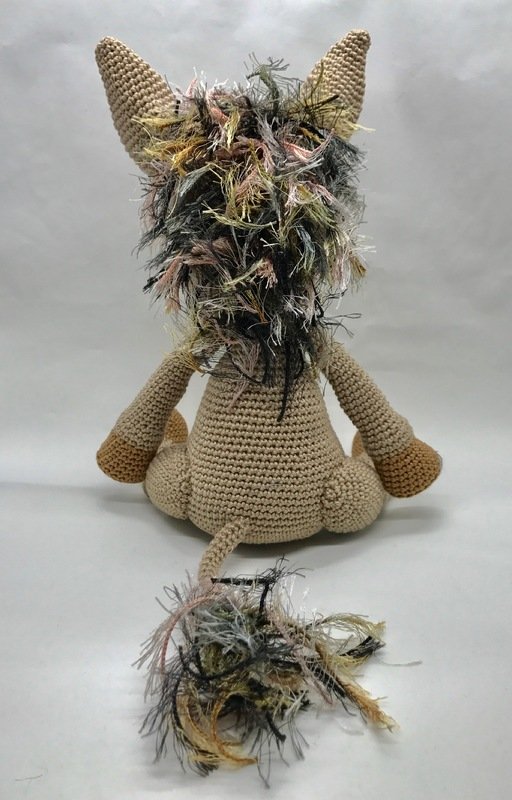 Mit der Fusselwolle wird nicht gehäkelt du knüpfst damit nur für die Mähne.