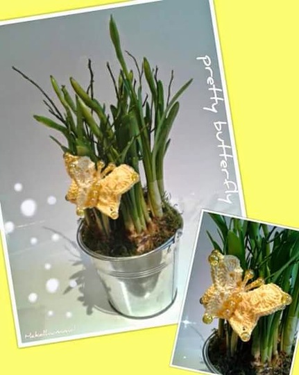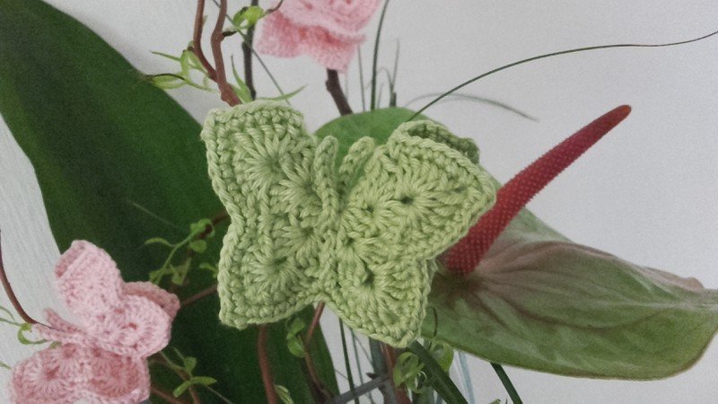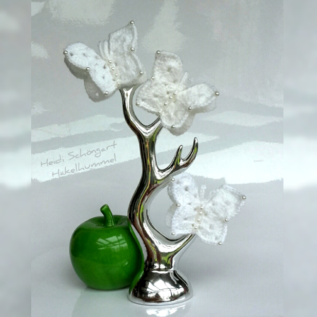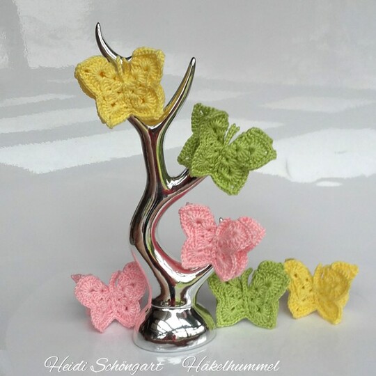 Dies ist eine Häkelanleitung für einen 3D-Schmetterling zum Festklemmen. Die Anleitung ist Dank der ausführlichen Beschreibung und Bebilderung auch für Anfänger geeignet. Die Größe des Schmetterlings ist ca. 4 cm hoch und ca. 5 cm breit. Es varriert, je nach Garn, Häkelnadel und wie fest oder locker gehäkelt wird.