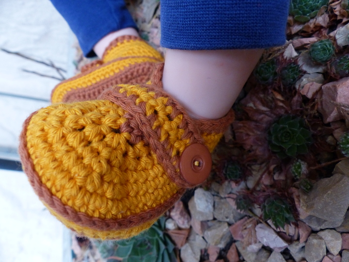 Geeignet sind auch Wollreste zum Häkeln dieser Schühchen, da man mit verschiedenen Farben und Garnen arbeiten kann.