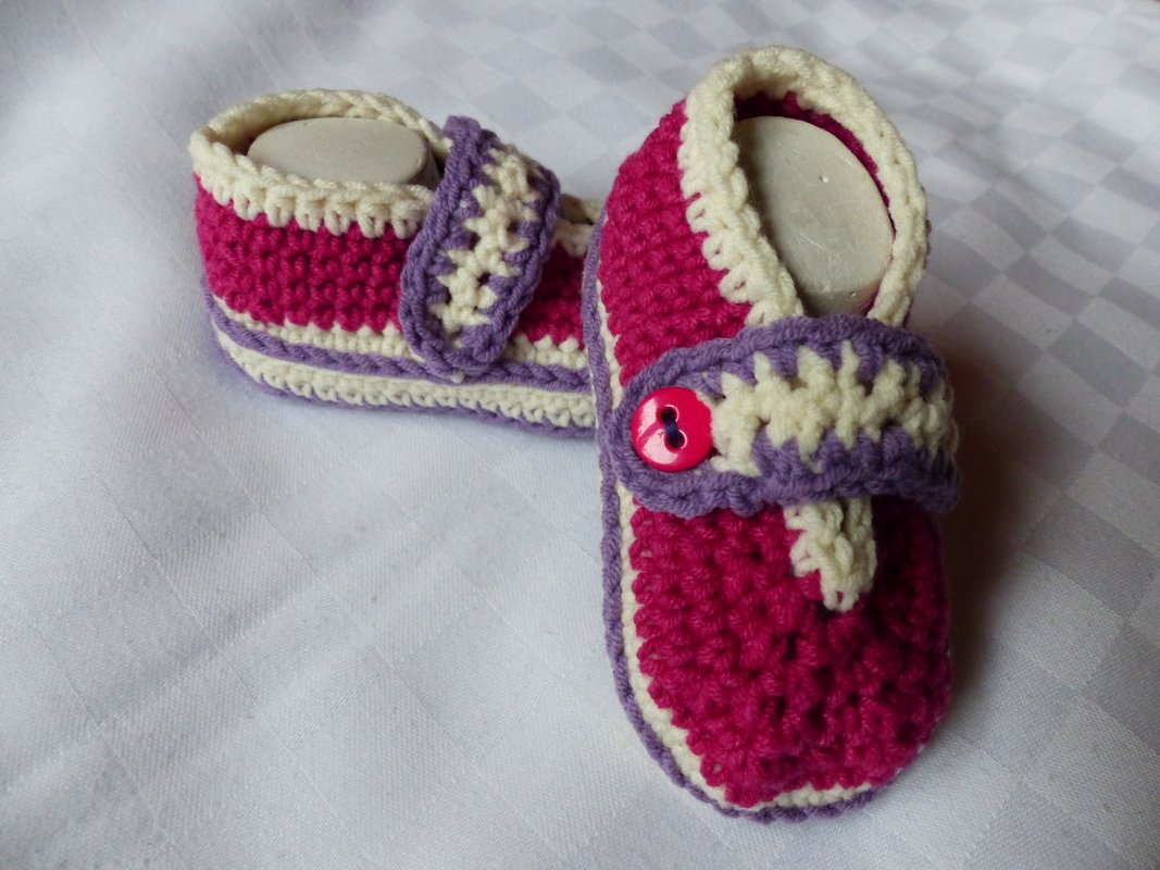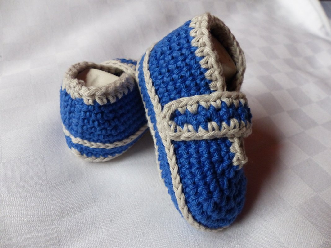 Häkelanleitung für Babyschuhe in Form eines Halbschuhes.