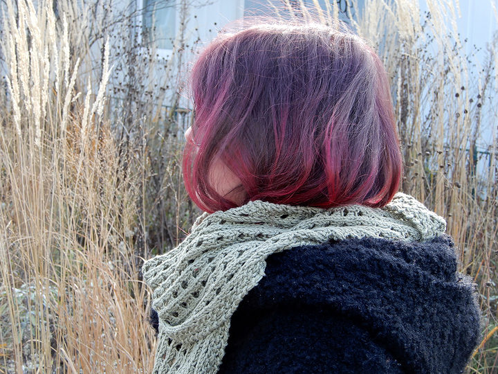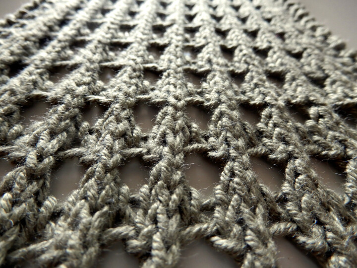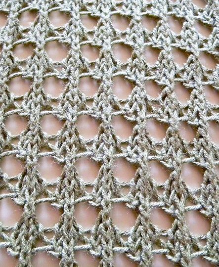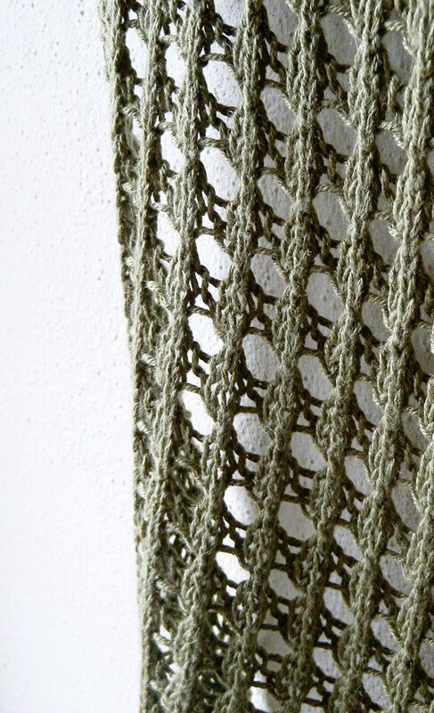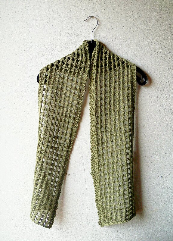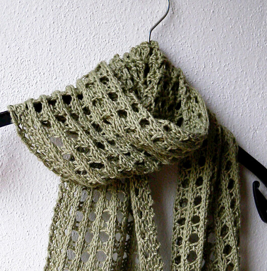 The scarf is worked in an easy to memorize eyelets pattern – more holes than anything else. It knits up quickly in an aran weight cotton yarn, but can be worked in any other yarn as well. Hints on how to make it a narrower scarf or a wider stole are in the pattern.