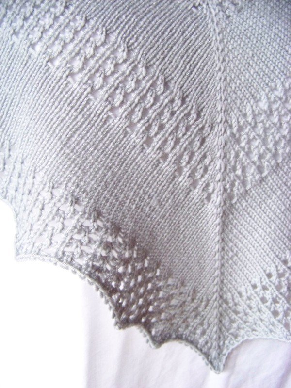 This Shawl is a great project for beginners. The lacepart is easy to knit and the stockinette part is perfect to watch TV.