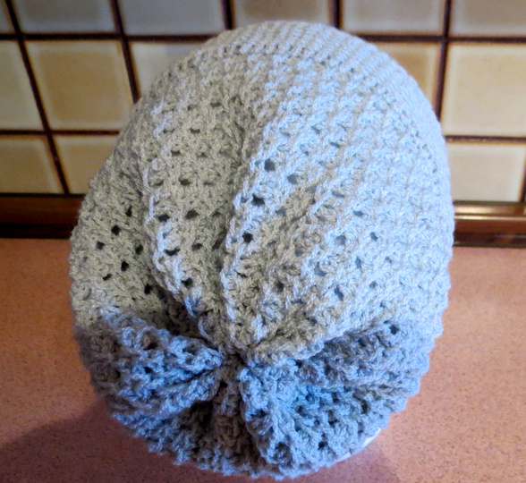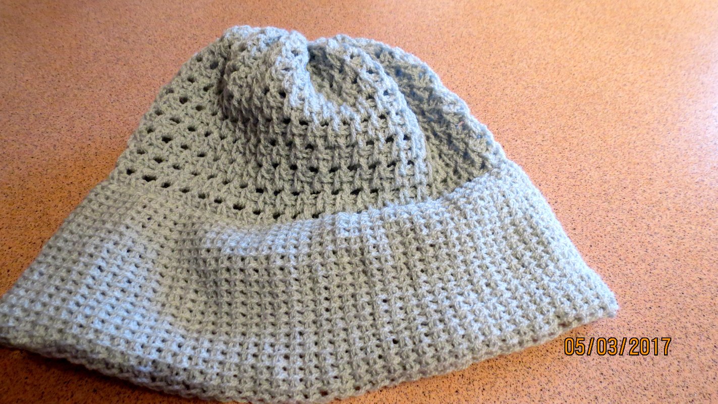 Diese Mütze wird tunesisch gehäkelt.