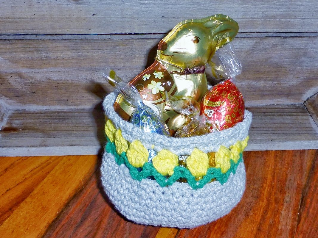 Dieses Körbchen ist ein tolles Mitbringsel zu einer Einladung, kann z.B. mit Süßigkeiten, zu Ostern mit bunten Eiern oder auch einer kleinen Topfblume gefüllt werden.