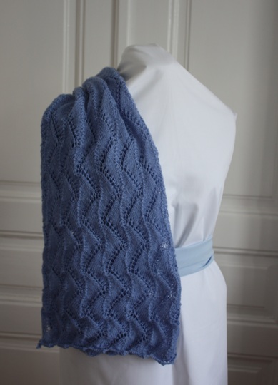 Materials: 100 % Merino extrafein, offer 2116, by Hamburger Wollfabrik (100% Merinowool, 2-ply, approx. 375 m / 50 g): 120 g in colour 186 blue