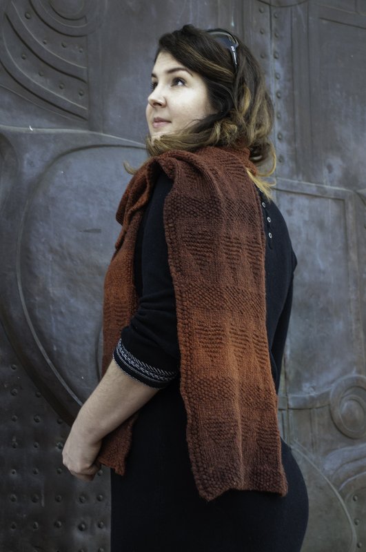 The scarf is worked in aran weight yarn using a textured pattern that is easy to knit. It is a written pattern, the hearts are charted as well. Length and width are both adjustable to your needs.