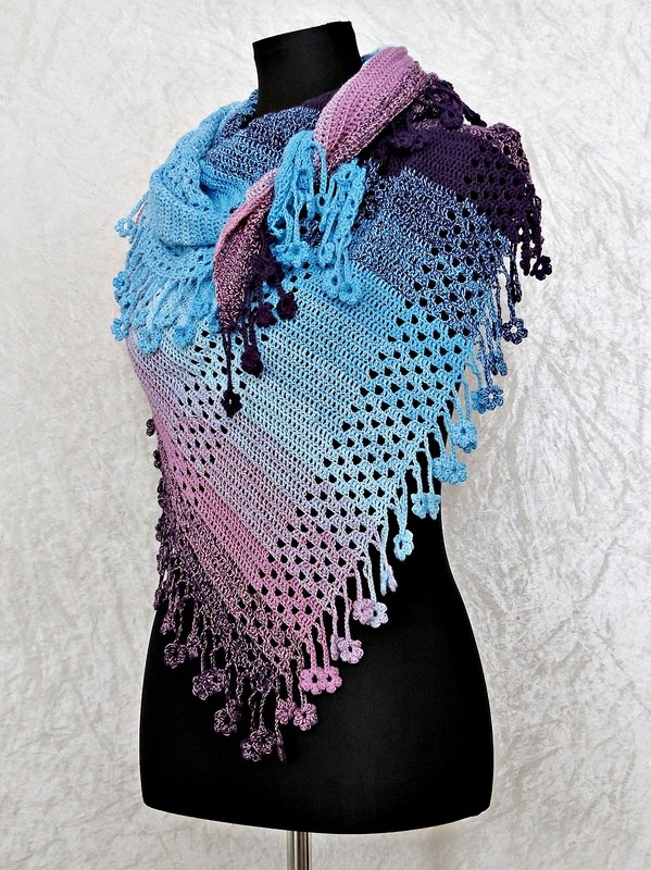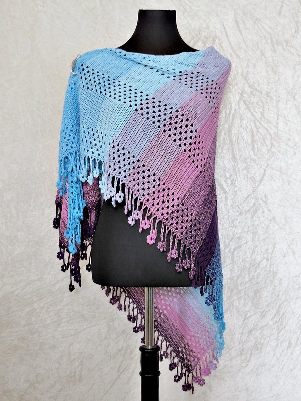 This is the crochet pattern for a wonderful big wrap which can be worn in versatile ways. Little Daisies which gave this shawl its name are crocheted as you go and are the highlight of this amazing wrap.