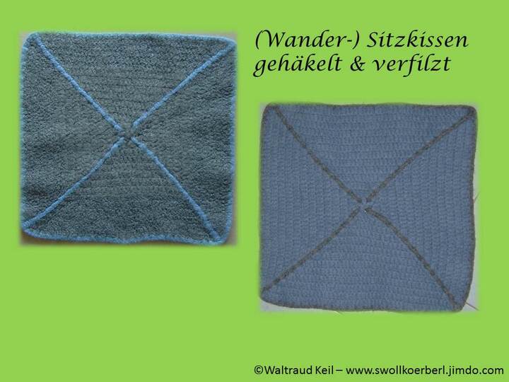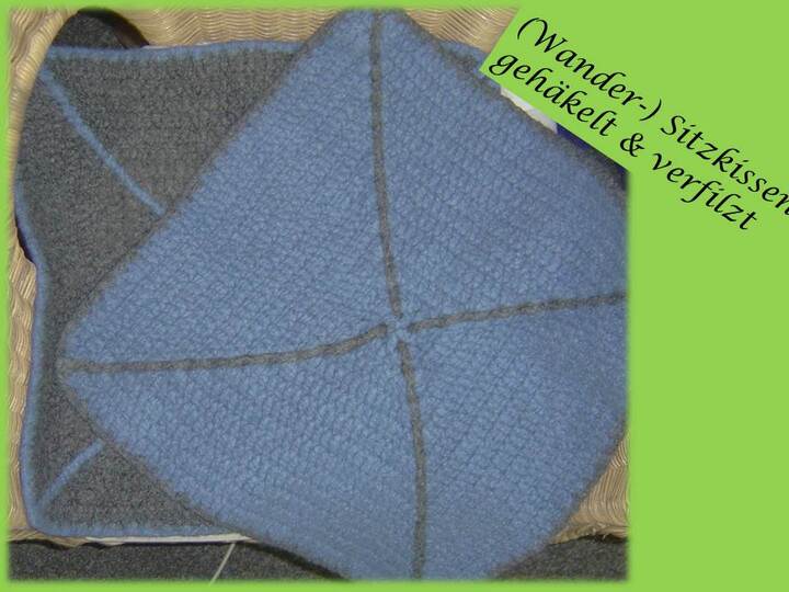 Ob im Rucksack dabei oder zuhause auf einer Gartenbank, so ein gefilztes Sitzkisserl ist einfach praktisch, hält Schmutz und Nässe ab und ist ein Kälteschutz. Etwas kleiner gefertigt, könnte man es auch als Topflappen nutzen.