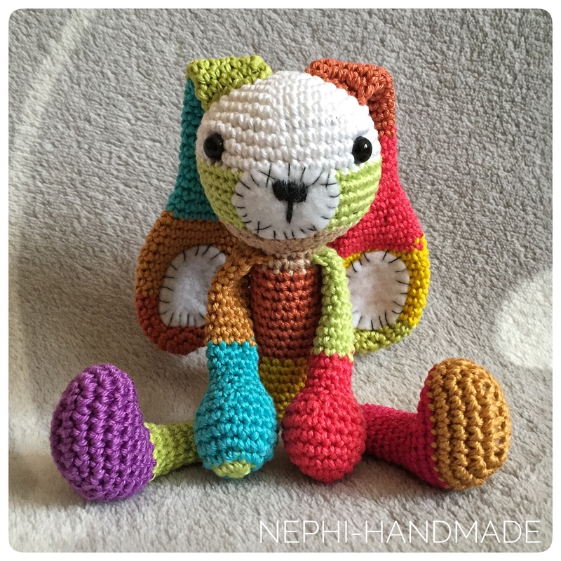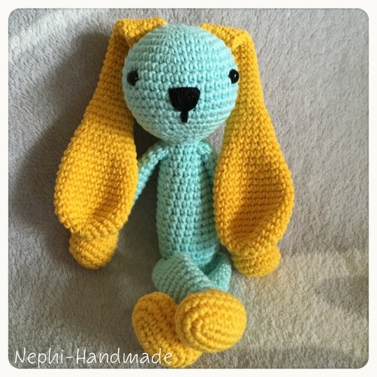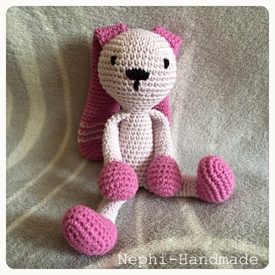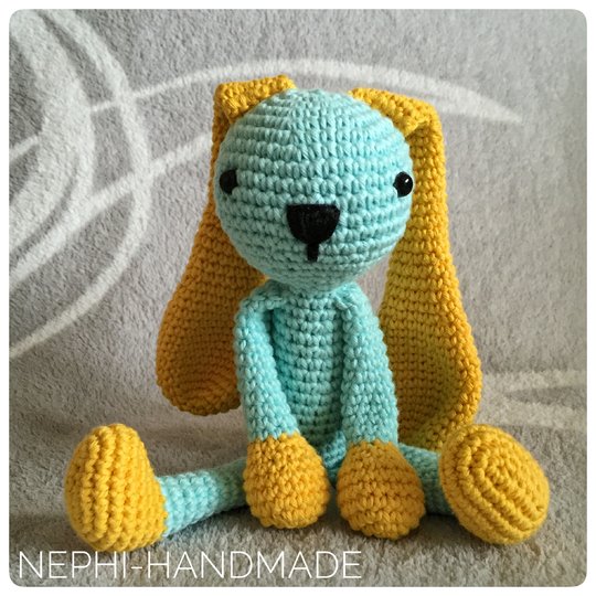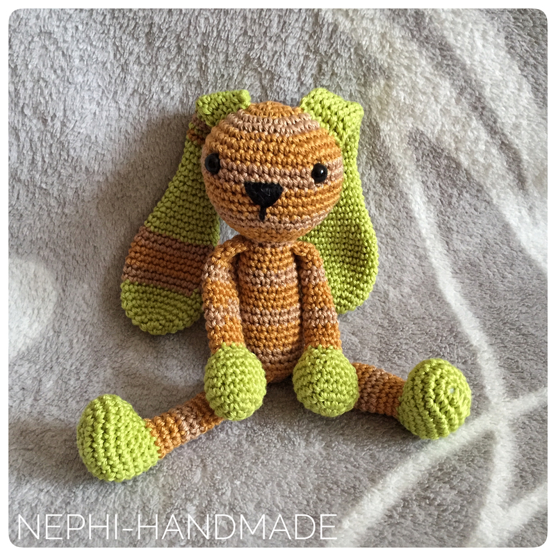 Je nach verwendeter Wolle kann die größe variieren. Es kann auch super Restwolle verwendet werden... einfach die Enden aneinander Knoten und los häkeln. So entsteht ein einzigartig bunter Hase.