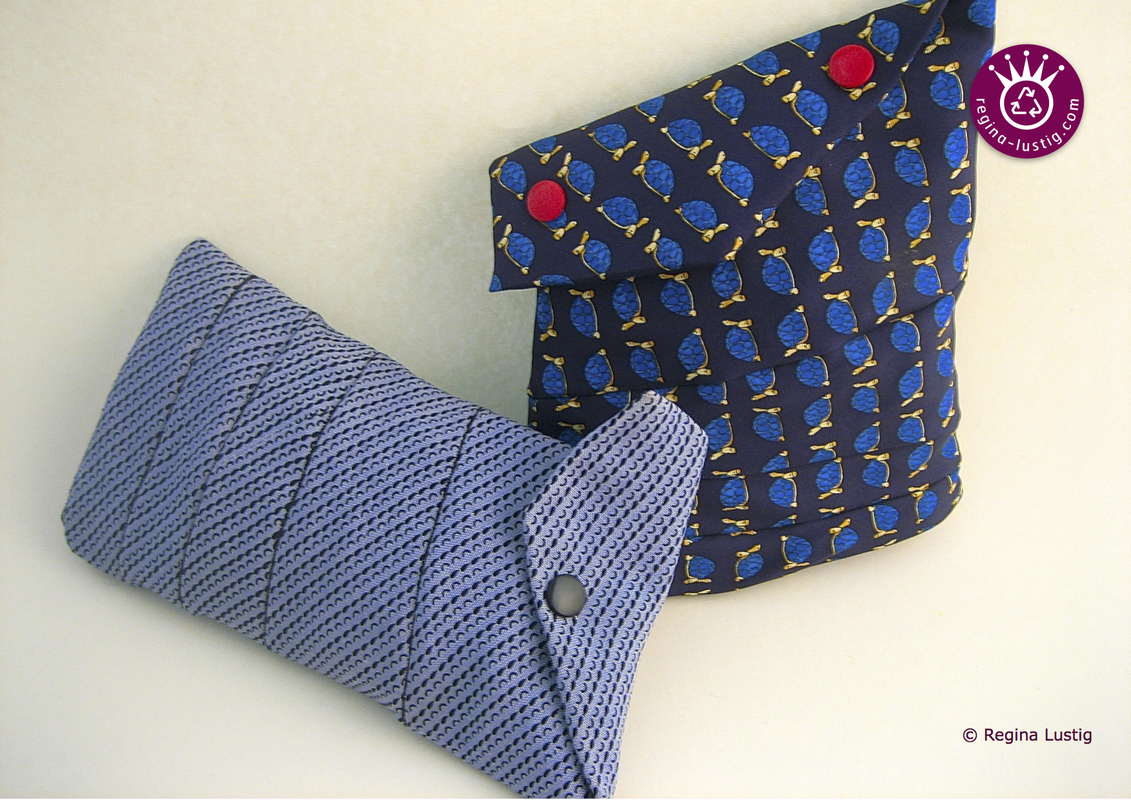 Diese kleinen, bunten, witzigen Upcycling-Taschen aus Krawatten bieten Platz für die vielen Begleiter in deiner Handtasche, wie Brille, Handy, Taschentücher und Kosmetik.
