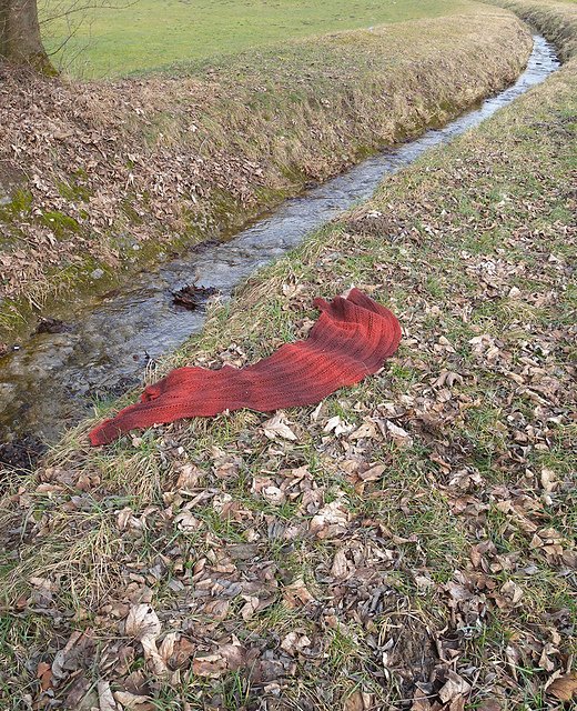 The "Garter Hug" is a knitting pattern for a stole in rounded shape. The name says it all, there are no purl stitches involved. It is a chevron pattern that uses knit stitches only. The length of the shawl is easily adjustable.