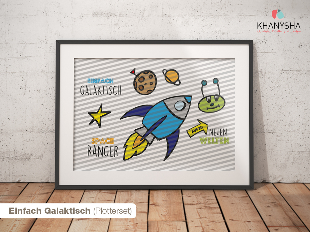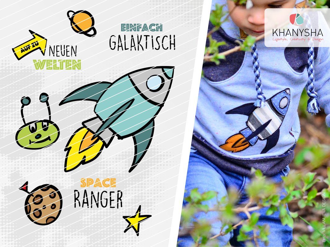Endlich mal wieder ein Set voller toller Plotterdateien für galaktisch coole Jungs! Das Hauptmotiv bildet die Rakete, abrundend dazu gibt es 3 Typos, einen Außerirdischen, Saturn und Mond und einen Stern! Natürlich auch für Mädels ;)