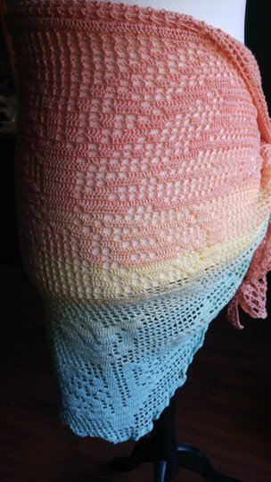 Dieses außergewöhnliches XL-Tuch mit Frühlingsmotiven in Filethäkeltechnik ist ein wundervolles Accessoire für frische Frühlings- und Sommerabende. Du kannst es in verschiedenen Varianten tragen und deinem Outfit anpassen. Gehäkelt wird von unten nach oben. Benötigt werden Grundkenntnisse beim Häkeln von Luftmaschen, Stäbchen und Doppelstäbchen. Das Mustertuch wurde mit einem dreifädigen Farbverlaufsgarn gehäkelt. Verwendet wurden ca. 330g/1600Meter. Damit hat das Tuch eine Größe von etwa 230x80 cm.