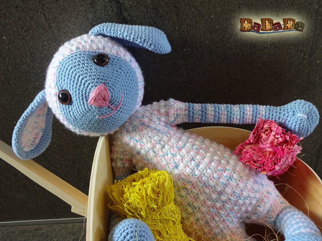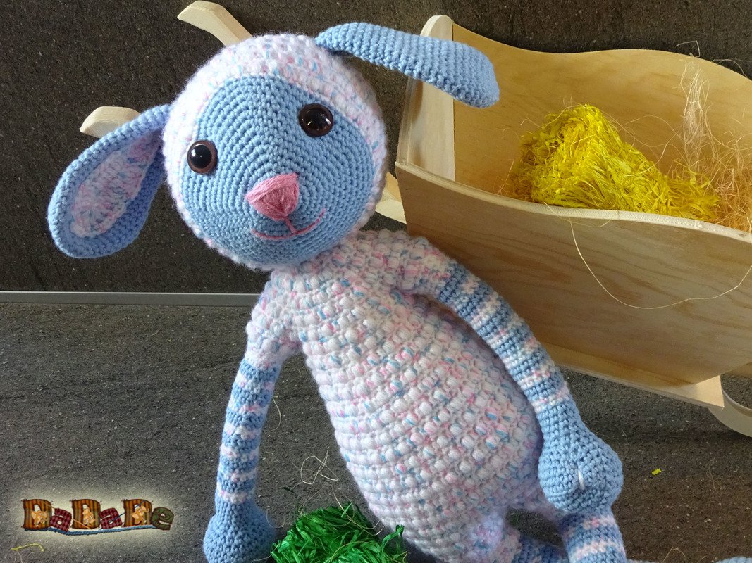 Mit der Nadelstärke 2,5 gehäkelt wird das Schäfchen ungefähr; 56cm hoch