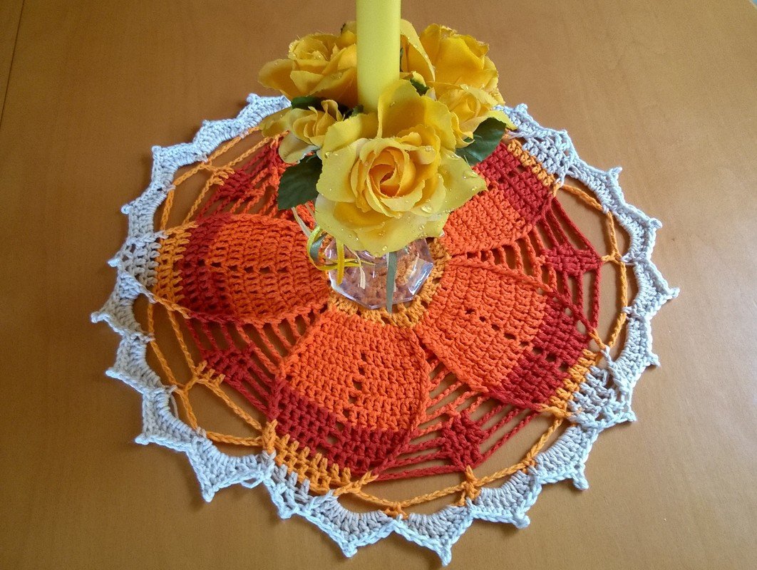 Dieses wunderschöne Deckchen mit der großen Blume eignet sich hervorragend als Unterdeckchen, für Kerzenständer oder andere Dekoelemente.