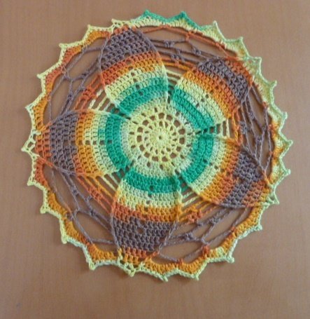 Dieses Deckchen ist auch schon für Anfänger geeignet. Es werden folgende Maschen benötigt: Luftmaschen, feste Maschen, Kettmaschen, Stäbchen, stehendes Stäbchen ( in der Anleitung steht ein Link), vorderes Reliefstäbchen.