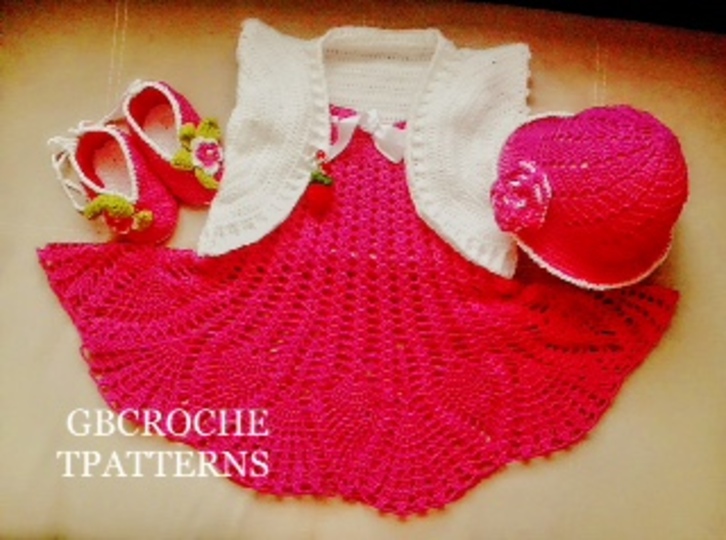 NOT THE FINISHED ITEM. This baby crochet pattern includes the flower crochet pattern as shown in the pictures to be attached later to the dress, hats and shoes. This crochet baby dress pattern includes the patterns for