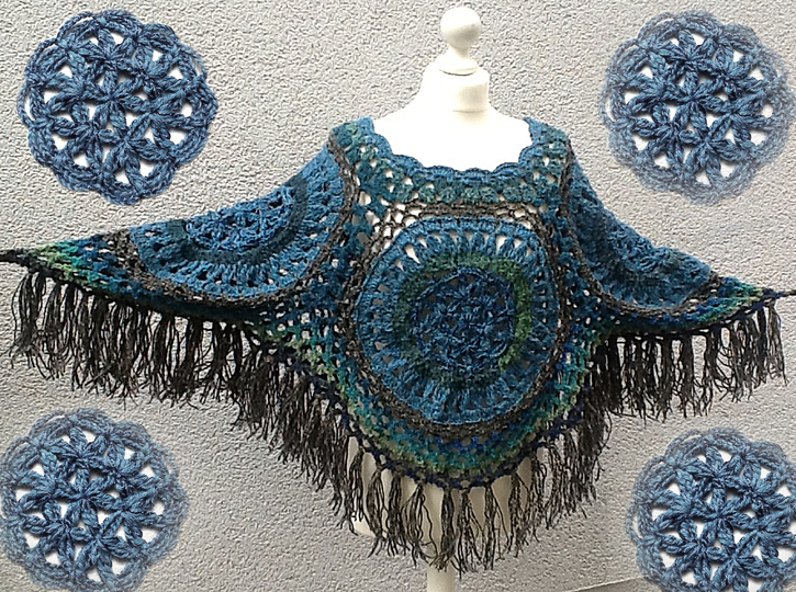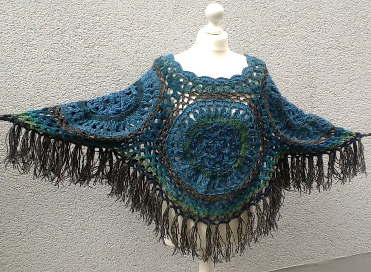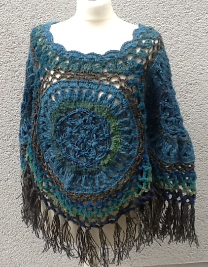 Der schöne Poncho besteht aus 4 gleichen Grannys....Hier kann man einen schönen Wollemix veranstalten. Ich habe die Wolle von Firma ONLINE und Adriafil verwendet.