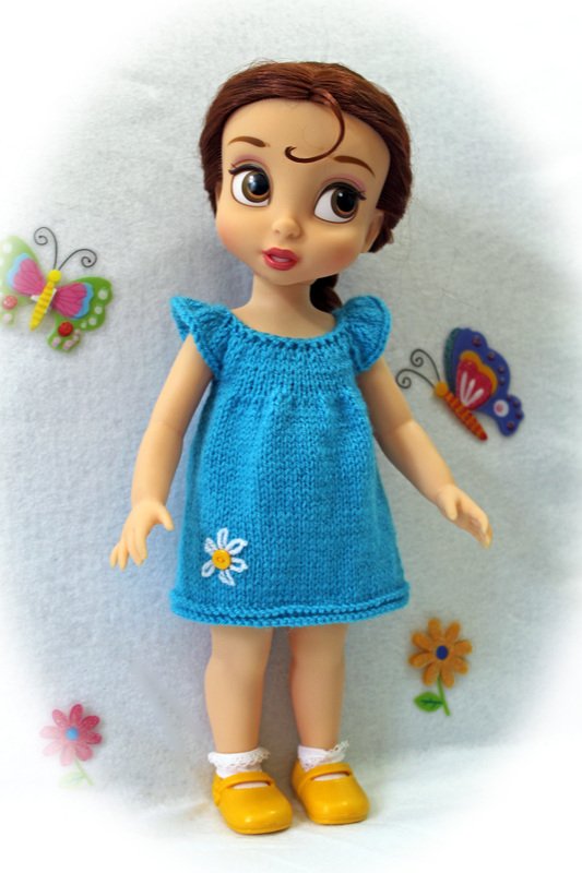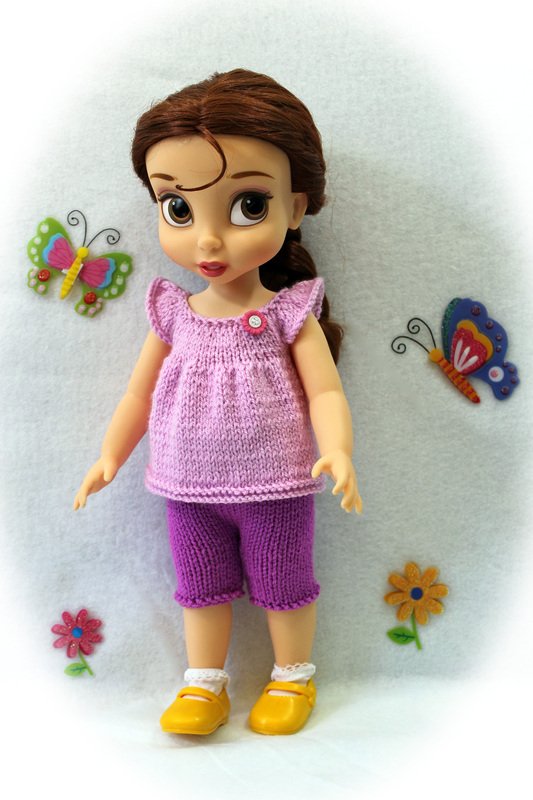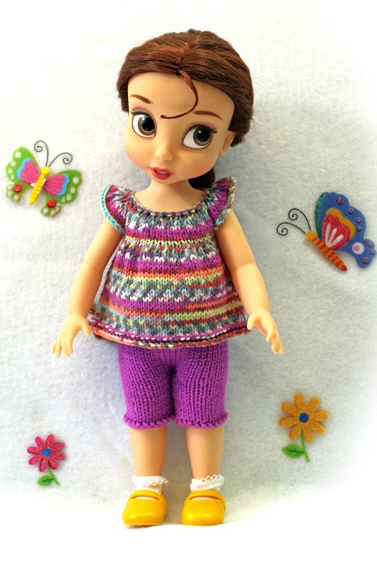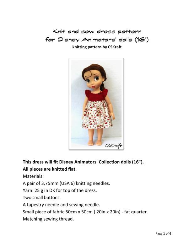 Each pattern includes 6 pages of row by row instruction and pictures how to make dress, top, shorts and knit and sew dress for 16 inch doll.