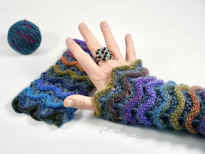 Whether you are knitting with one color, with stripes or with color gradients: this pattern is addictive!! I could not stop, so I tried different variations to show you how diverse this pattern is! I'm really excited about these Wrist Warmers and I hope you too! Try it and have fun! You will spice up your look, you will have warm hands and the cuffs are really a nice present for best moms, good friends, beloved daughters or sisters ...