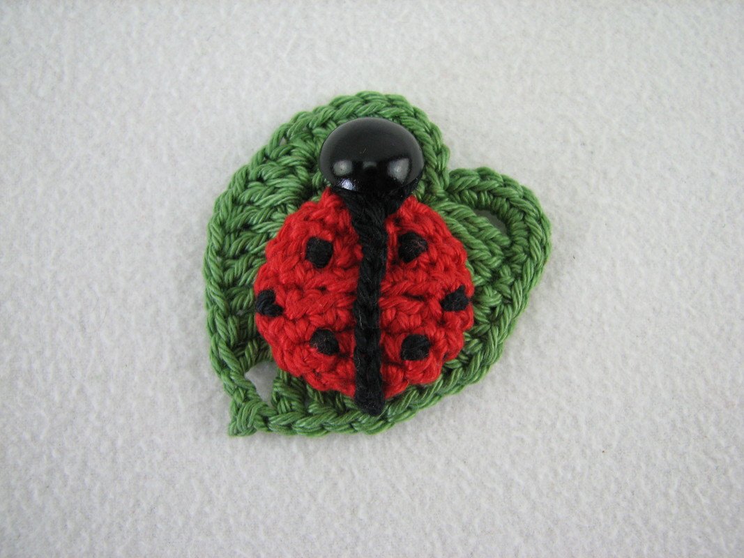 Der kleine Marienkäfer auf dem Blatt wird an der Tasche angenäht und verbirgt in seinen Innern einen Chip oder ein Geldstück.
