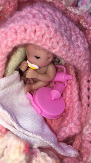 Das Babybettchen im Beutel ist für eine kleine Puppenmutti unterwegs ein praktischer Begleiter. Beutel fix umgekrempelt und tada das Baby liegt im Bettchen und man kann damit spielen.