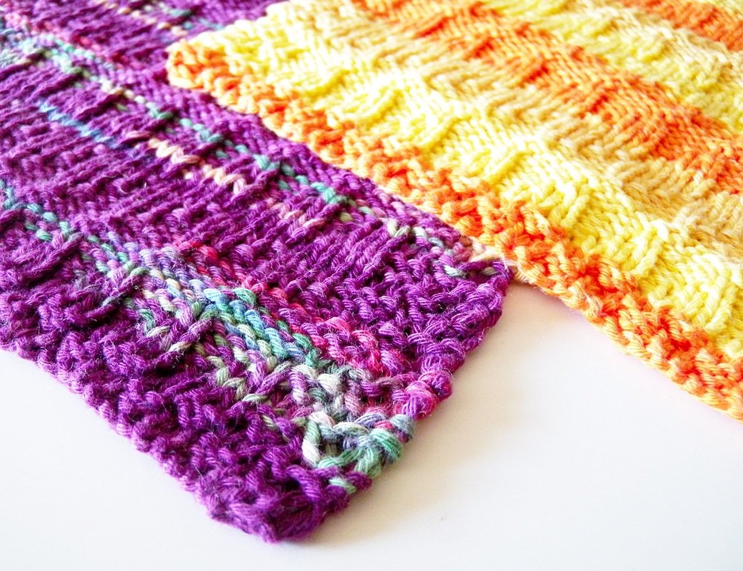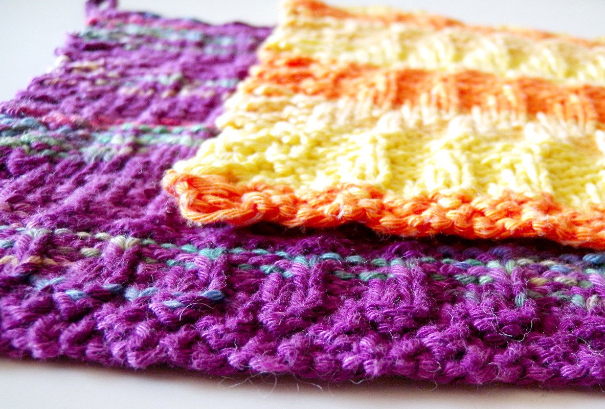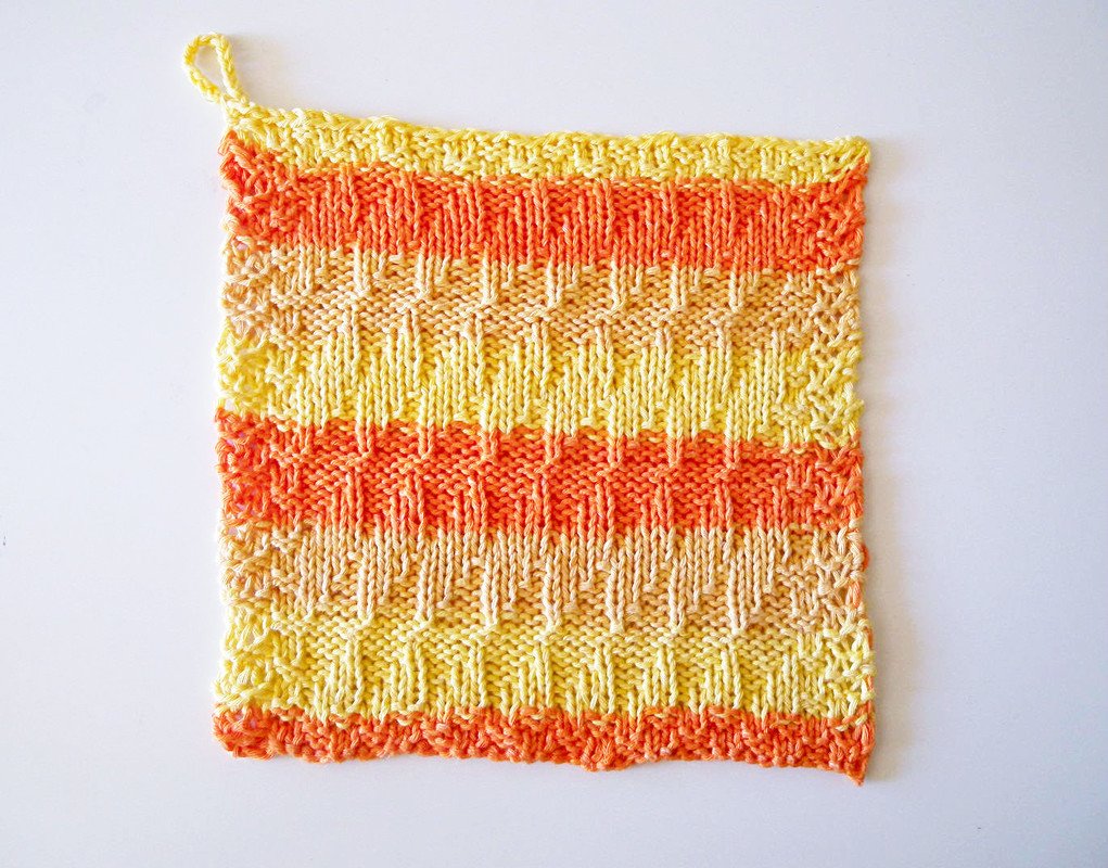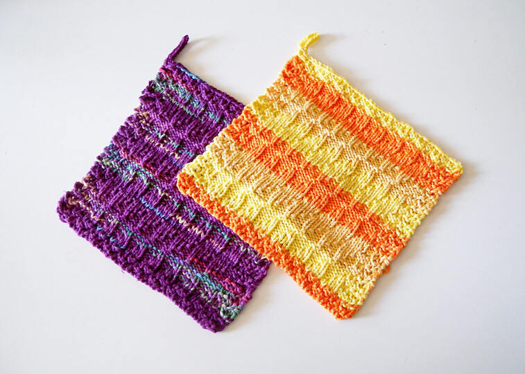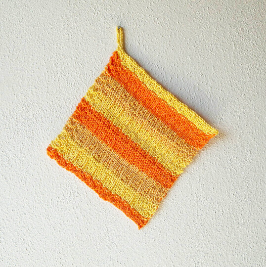"Papaya" - a knitting pattern for a potholder or dishcloth in summer colors to brighten up your kitchen. It is worked in an aran weight cotton yarn, using an easy textured pattern (written and charted). Knits and purls, that's all you need to know. The stitch pattern is completely reversible, either side looks good. It is suitable for knitting beginners.